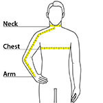 | Neck | 14 1/2 - 15 | 15 - 15 1/2 | 15 1/2 - 16 | 16 - 16 1/2 | 16 1/2 - 17 | 17 - 17 1/2 | 17 1/2 - 18 | 18 - 18 1/2 | 18 1/2 - 19 | 19 - 19 1/2 |